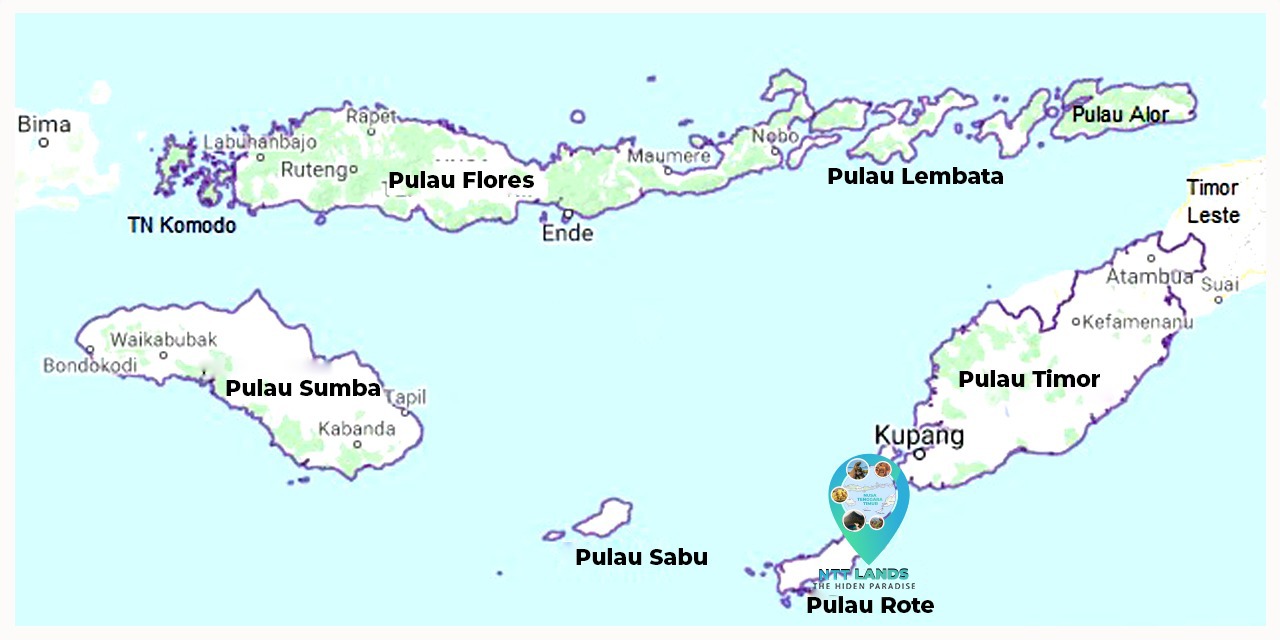 The Rote Islands, also called the Roti Islands, are an archipelago in the East Nusa Tenggara Province of Indonesia. These islands are the southernmost region of Indonesia.[2] This area is famous for the peculiarities of lontar cultivation, coastal nature tourism, sasando music, and Ti'i langga traditional hats.[3] The Rote Islands with the largest island, Rote Island, and the surrounding small islands have the status of a regency under the name Rote Ndao Regency through Law Number 9 of 2002. The Rote Archipelago consists of 96 islands, 6 of which are inhabited: Rote Island with an area of 97,854 Ha, Usu Island in the northeast with an area of 1,940 Ha, Nuse Island with an area of 566 Ha and Ndao Island with an area of 863 Ha and Do'o Island in the west with an area of 192 Ha, Landu Island in the south with an area of 643 Ha, and 90 other islands not inhabited by humans.[5] This region has a dry climate which is influenced by monsoons and the rainy season is relatively short (3-4 months). The northern and southern parts are low-lying beaches, while the central part is valleys and hills.